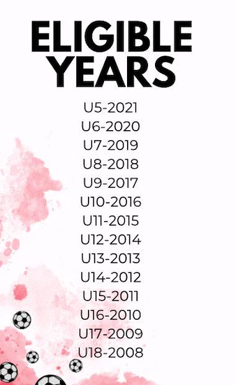 We register players according to their birth year. See the chart below to find your players age group. In the Spring we will be accepting players born 2008-2021.